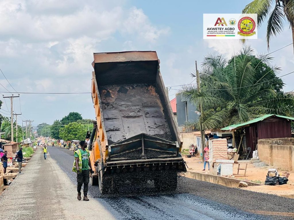 the current MCE, Hon. Akwetey Agbo, has vowed to complete the project. Having coated half of the road, he plans to add another layer to complete the entire project.