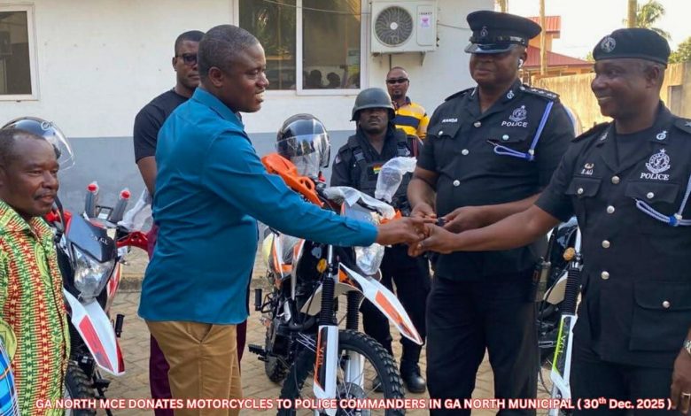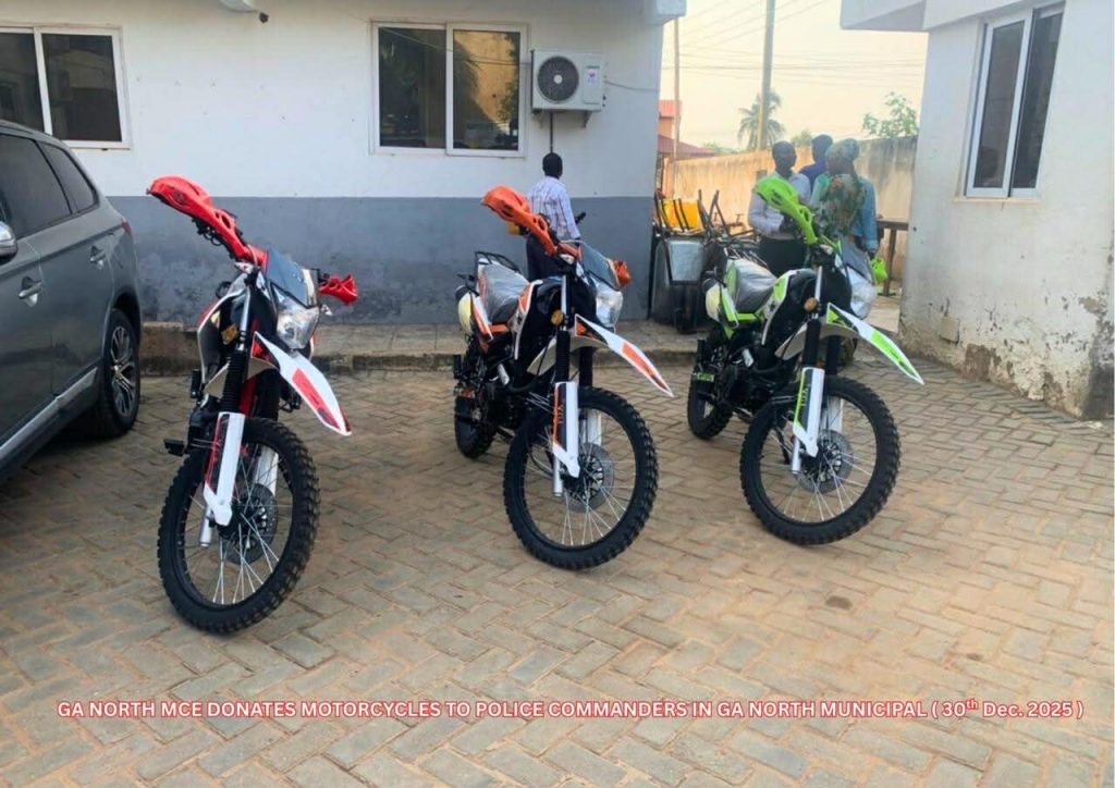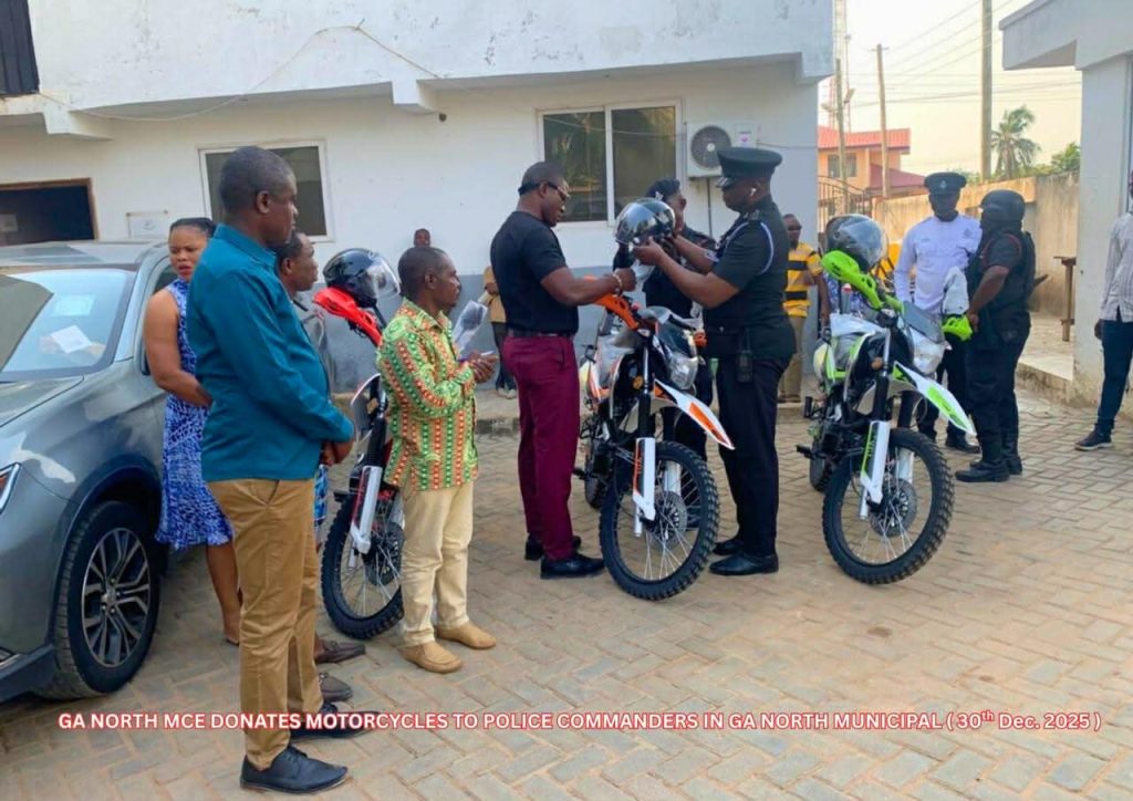 In an effort to bolster security and enhance police inside the municipality, the Ga North Municipality’s Municipal Chief Executive (MCE) Hon. Akwetey Agbo has given motorcycles to District Police Commanders. On Monday, December 30, 2025, a small ceremony was held at the Municipal Assembly premises to formally hand off the motorcycles.