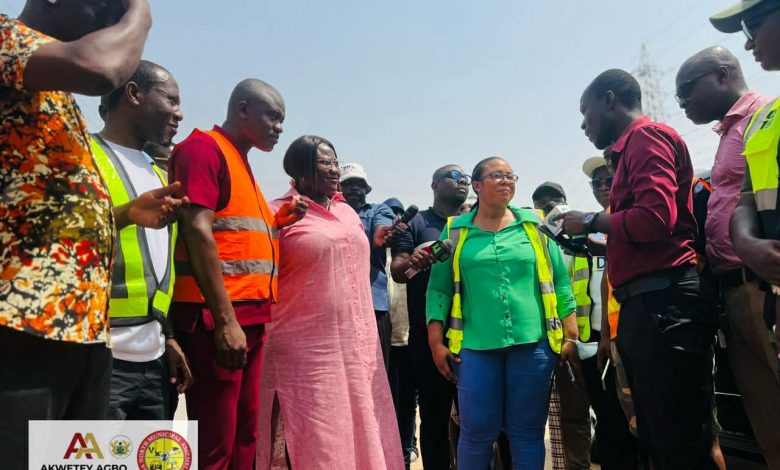 The Greater Accra Regional Minister, Hon. Linda Akweley Ocloo, paid a working visit to the Ga North Municipality, specifically Pokuase, to inspect ongoing sanitation works being undertaken by the Municipal Chief Executive (MCE), Hon. Awetey Agbo. The visit formed part of the Regional Minister’s commitment to ensuring that sanitation projects across the region are executed effectively and in line with government standards.